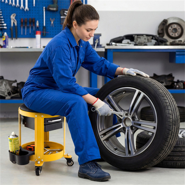 ● More Space for Storage: This rolling mechanic stool includes 2 drawers in 2 directions, the twin can holders and a round tool tray which provides you with large storage space to accommodate various tools and making them within reach for easy repair.